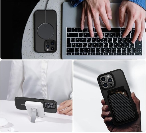 Etui o hybrydowej konstrukcji z wbudowanymi magnesami współpracującymi z akcesoriami MagSafe. Posiada dodatkowe zabezpieczenie wyspy aparatu w postaci czarnego obramowania wystającego poza krawędzie plecków. Tył wykonany z wytrzymałego, odpornego na wstrząsy poliwęglanu o matowym, półprzezroczystym wykończeniu, z powłoką skin-touch (efekt drugiej skóry). Elastyczne ramki z silikonu świetnie dopasowuje się do urządzenia, zapewniając ochronę przed upadkiem. Etui posiada wszelkie niezbędne otwory na porty oraz responsywne, czarne przyciski umożliwiające komfortowe użytkowanie.
