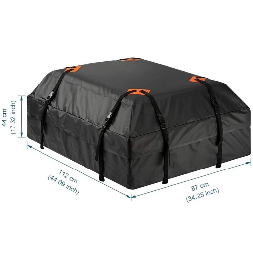 💧 Duża pojemność i możliwość złożenia: Całkowite wymiary torby dachowej: 112 x 87 x 44 cm;Pojemność: 425L. Miękki materiał sprawia, że można go złożyć i włożyć do pokrowca, a następnie umieścić w samochodzie.