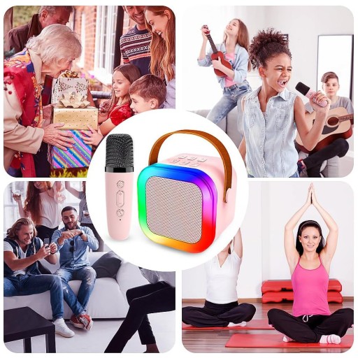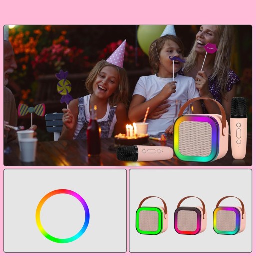 Urządzenie do karaoke dla dorosłych dzieci, Mini przenośny głośnik do karaoke Bluetooth z 2 mikrofonami bezprzewodowymi i dynamicznymi światłami, Prezent urodzinowy, Domowy KTV, Na zewnątrz, Podróże