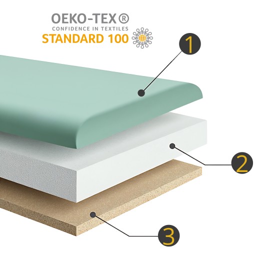 - Certyfikat OEKO-TEX®: Potwierdzający wysoką jakość tkaniny oraz gwarantujący brak substancji szkodliwych dla zdrowia