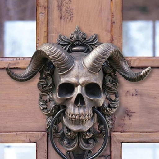 [Sheep Head Skull Sculpture]: Beautifully detailed door knocker to personalize the entrance of your home, welcome and impress your guests.