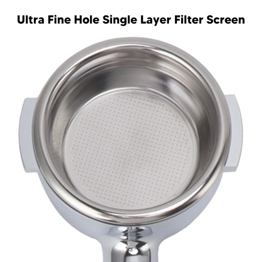 4. EKRAN JEDNOWARSTWOWY: Ten portafiltr został zaprojektowany z jednowarstwowym siatką filtrującą, która może szybko filtrować duże cząstki i wydobywać delikatniejszą kawę.