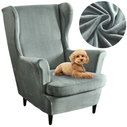 ✨ POKROWIEC NA FOTEL USZAK ELASTYCZNY WELUR SZARY
