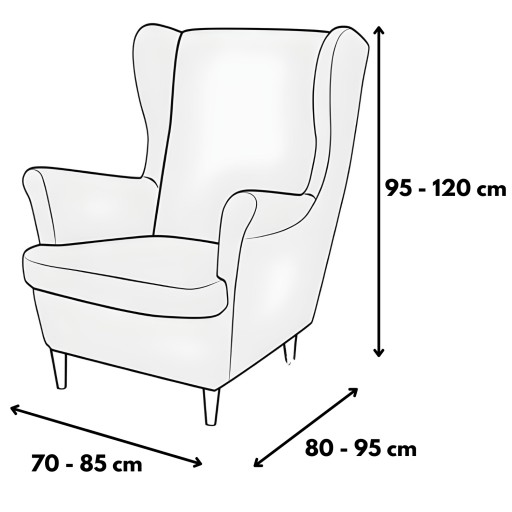 Pokrowiec jest przeznaczony dla foteli o wymiarach podanych na grafice obok. Dzięki elastycznemu materiałowi z dodatkiem spandexu, idealnie dopasuje się do niemal każdego fotela, bez względu na jego kształt. Niezależnie od tego, czy Twój uszak ma zaokrąglone boki, czy proste linie, pokrowiec More&Deco doskonale się do niego dopasuje. Elastyczność materiału sprawia, że pokrowiec nie marszczy się i nie przesuwa, co gwarantuje estetyczny wygląd na co dzień.