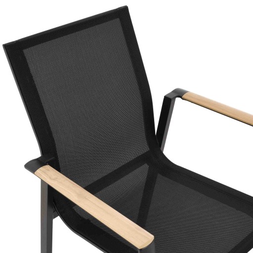 Wygodne, aluminiowe krzesło ogrodowe Buti czarne o ergonomicznym kształcie. Wykończenie z tkaniny Textilene oraz tworzywa polywood nadają krzesłu nowoczesnego stylu.