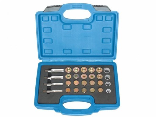 Dostarczany w wygodnej walizce komplet naprawczy do gwintów korka oleju. Wysoka jakość wykonania zapewnia długą żywotność i bezproblemową pracę nawet w trudnych warunkach.