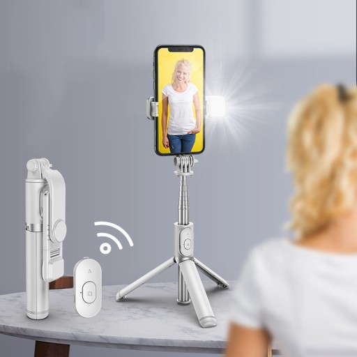 Kijek do Selfie Tripod Statyw z pilotem z lampą do robienie selfi