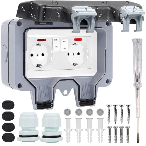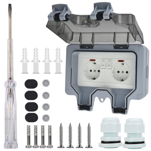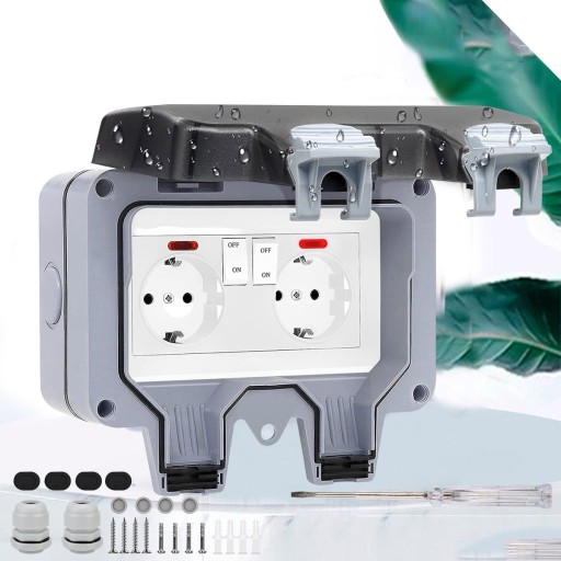 ДВОЙНАЯ САДОВАЯ РОЗЕТКА IP66 ВНЕШНЯЯ ВОДОНЕПРОНИЦАЕМАЯ РОЗЕТКА