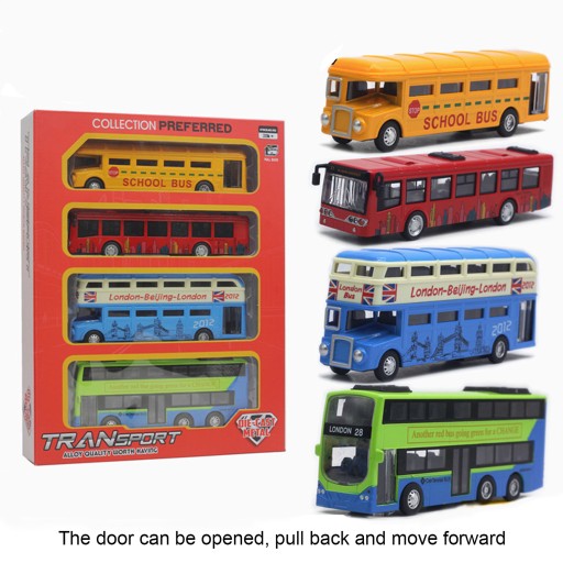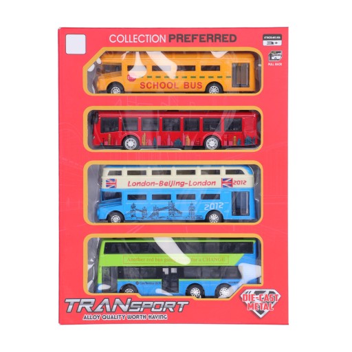 . 4 szt. Zestaw zabawek autobusowych ze stopu