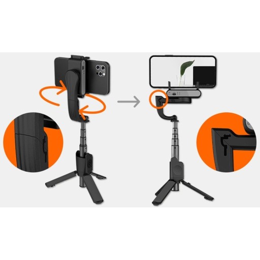 Stabilizator posiada zintegrowany mono-osiowy bezszczotkowy silnik z obrotem wokół osi 360°, który jest odpowiedni do robienia płynnych zdjęć i wysokiej jakości filmów z wysoką stabilnością obrazu. Kolejną zaletą stabilizatora jest obrotowe ramię uchwytu na telefon o 90°. Z tak zmodyfikowanym ramieniem, urządzenie może być używane do 360° szerokiego śledzenia twarzy, robienia ciekawych zdjęć CloneMe i tworzenia panoramicznych filmów. Sam uchwyt na telefon jest wyściełany i chroni telefon przed możliwymi zadrapaniami. Uchwytstabilizatora jestprzyjazny dla skóry,ergonomiczny, a dziękiskórzanej powłocejest równieżantypoślizgowy.