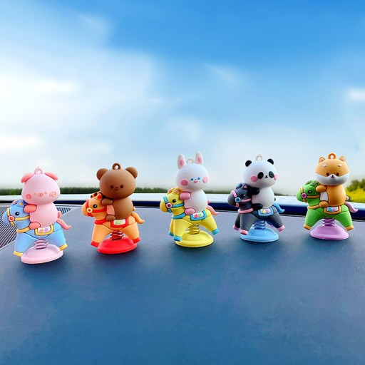 Dekoracja wiosenna samochodu Kreatywna ozdoba z poruszającą głową Stylowa dekoracja w formie lalki na biurko Konik na biegunach Niedźwiedź