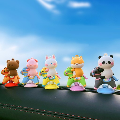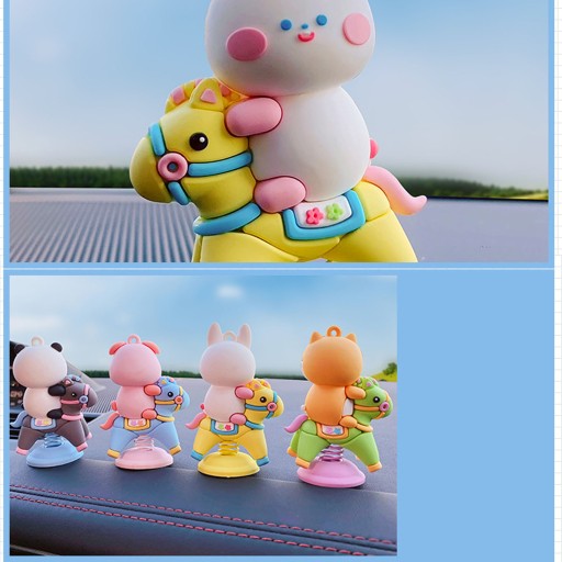 Dekoracja wiosenna samochodu Kreatywna ozdoba z poruszającą głową Stylowa dekoracja w kształcie lalki na biurko Konik na biegunach Świnia