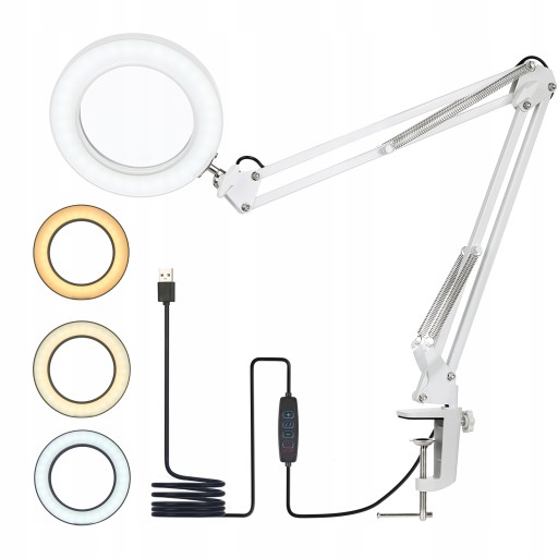 3 tryby oświetlenia: ta lampa LED z lupą ma 64 koraliki LED o wysokiej jasności, 3 temperatury kolorów: ciepłe światło, ciepłe białe światło i białe światło. Każdy tryb oświetlenia ma 10 poziomów ściemniania jasności. Kolor światła lub jasność można łatwo zmienić za pośrednictwem sterownika.