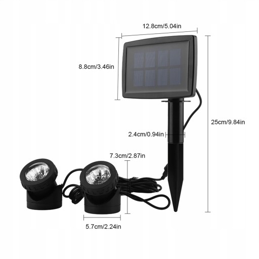 Rozmiar panelu słonecznego: ok. 12,8 x 8,8 cm / 5,04 x 3,46 cala