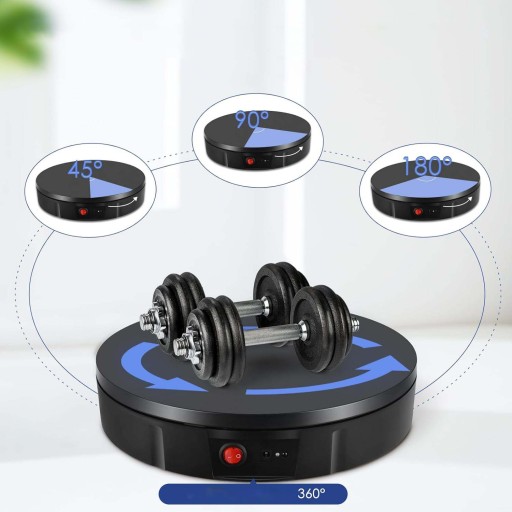 - Możesz używać tego elektrycznego gramofonu do fotografii, ekspozycji biżuterii, wideo na żywo, elektroniki cyfrowej, ekspozycji produktów, witryn sklepowych, wystaw tematycznych, pokazów fotograficznych, reklam i różnych ciężkich wystaw produktów, które zapewniają widok 360 stopni produkt.