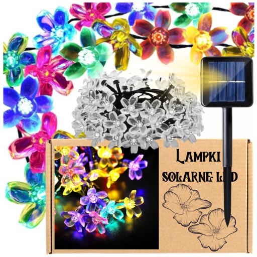 ☘️GIRLANDA SOLARNA LED MULTICOLOR KWIATKI SOLARNE NA TARAS DO OGRODU 50LED 7M☘️