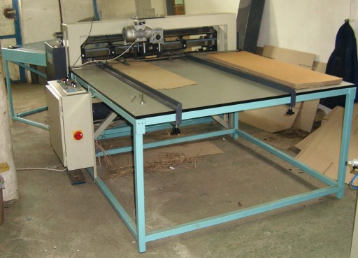 Maszyna uniwersalna do bigowania, szczelinowania, odcinania formatki z szerokości oraz długości (opcja dodatkowa). Maszyna może być wyposażona w wybijak do wycinania dodatkowych otworów np. na rączki lub odpowietrzające (opcja dodatkowa).
