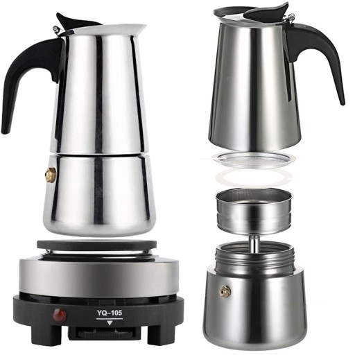 Kawiarka składa się z górnego zbiornika z uszczelką, filtra oraz dolnego zbiornika. Zmielone ziarna kawy należy umieścić w filtrze, do dolnego zbiornika należy wlać wodę (poniżej poziomu zaworu bezpieczeństwa) i połączyć ze sobą wszystkie elementy. Kawiarkę należy umieścić na kuchence – po kilku minutach gorąca woda przemieści się do górnego zbiornika przepływając przez zmielone ziarna. Pyszne i aromatyczne espresso jest wówczas gotowe!