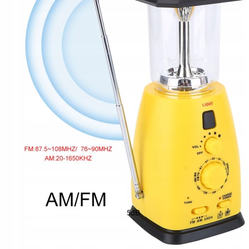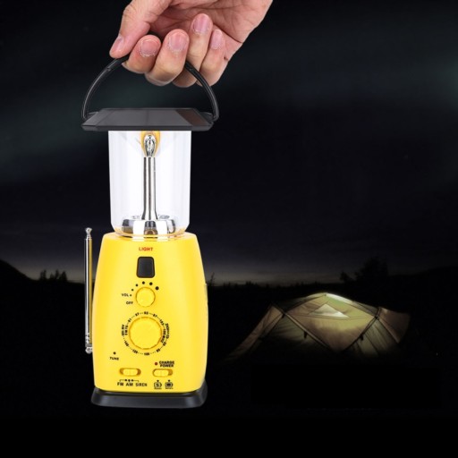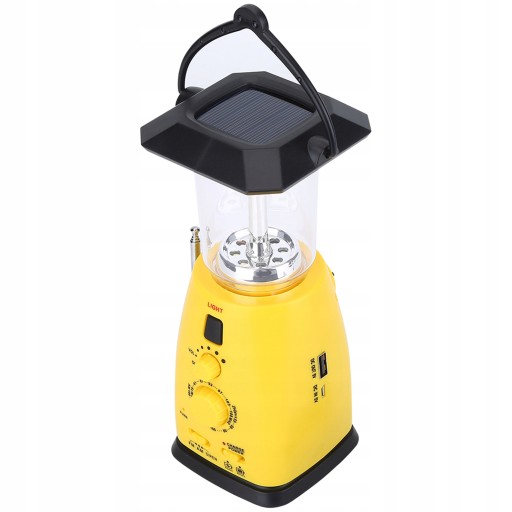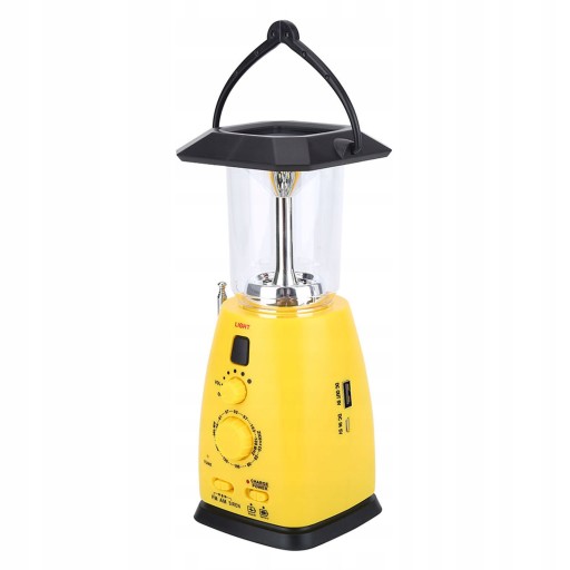 Ta lampa kempingowa ma 8 żarówek LED zapewniających jasne oświetlenie, ta lampa LED ma również dwa tryby do wyboru, niski lub wysoki. Aby zapewnić łączność ze światem zewnętrznym, gdy jesteś na wolności. Jest wyposażony w radio, które obejmuje szeroki zakres programów, w tym FM/AM dla Twojej ulubionej muzyki, wiadomości, programów sportowych, informacji o ruchu drogowym i innych. Dzięki panelowi słonecznemu i ręcznej korbie możesz generować energię dla telefonu komórkowego lub innego urządzenia przenośnego kompatybilnego z USB.