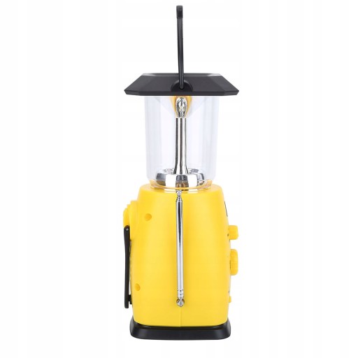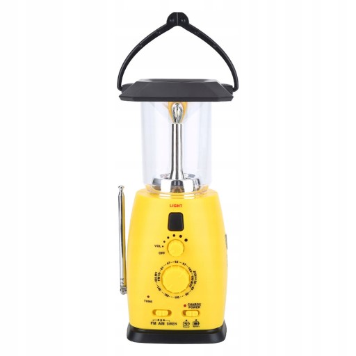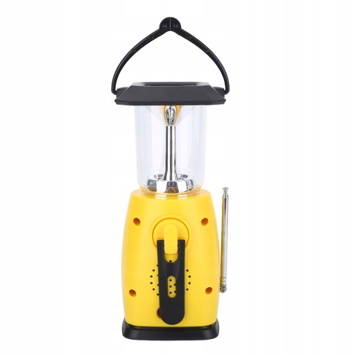 2. Jest to jasna lampa LED z 2 trybami jasności, a także radio do odbierania informacji i generator z dynamem do ładowania telefonów komórkowych. 3. Przezroczysta obudowa lampy nadaje się do delikatnego oświetlenia, z uchwytem do trzymania w dłoniach lub zawieszenia.