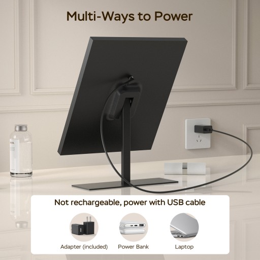 Podświetlane lusterko kosmetyczne LED nie wymaga instalacji, wystarczy podłączyć je do źródła zasilania, takiego jak gniazdko, laptop lub przenośne źródło zasilania za pomocą dołączonego kabla USB 5 V 2 A i zasilacza.