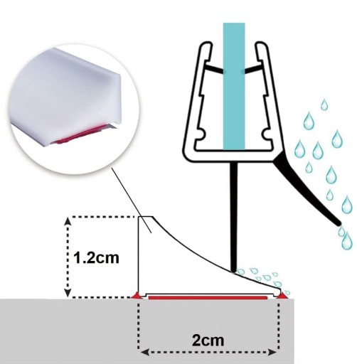 🔔🔔🔔【Uwaga】 Rozmiar: 200 cm długości x 20 mm szerokości x 12 mm wysokości Silikonowa uszczelka podłogowa ma tylko 12 mm wysokości, co nie spełnia wymagań pryszniców bez barier i dużych obszarów zatrzymywania wody.