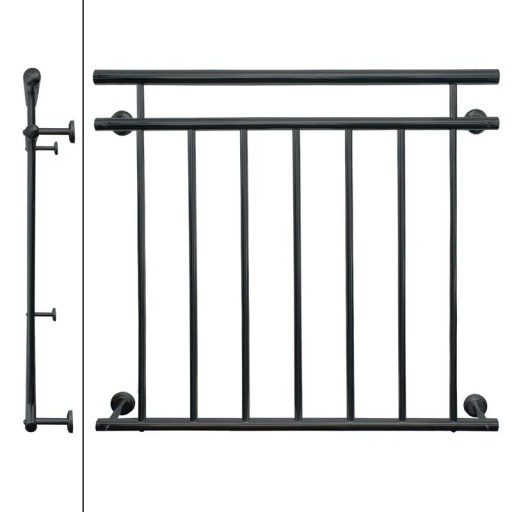 Ponadto zachwyca dyskretnym i liniowym designem. Balustrada balkonowa ma szerokość i wysokość 1000 x 900 mm i zawiera 7 prętów wypełniających. Waży ok. 4,9 kg i oferuje praktyczną poręcz o średnicy ok. 38 mm x 1,5 mm.