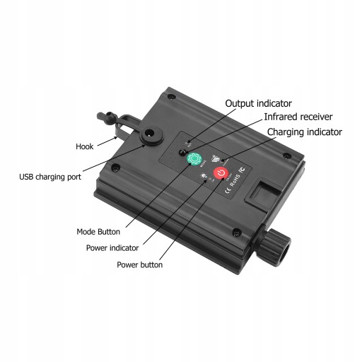 Cecha: 1. KONTROLA ŚWIATŁA: Ten panel świetlny steruje światłem, ładuje się automatycznie w ciągu dnia i automatycznie zapala się, gdy robi się ciemno.