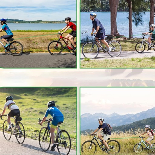 - 🚵Łatwy w użyciu, wystarczy podłączyć linę do siodełka z przodu roweru i główki ramy z tyłu roweru.