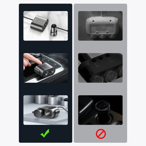 ⚡ Model ten dysponuje dwoma portami USB, a także dwoma gniazdami na zapalniczkę. Możesz do nich podłączyć kolejne ładowarki i w efekcie, ładować kilka urządzeń w tym samym czasie..
