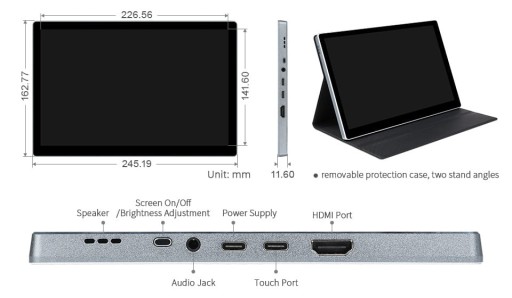 ⭐ 10,5-calowy wyświetlacz AMOLED z portem HDMI o rozdzielczości 2560 × 1600 2K, w pełni laminowany panel ze szkła hartowanego.