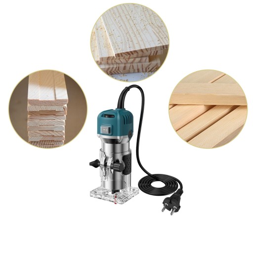 - Ta elektryczna obrzynarka jest szeroko stosowana w obróbce drewna, stolarstwie, rzemiośle, fazowaniu, rowkowaniu, wykańczaniu powierzchni, wycinaniu krzywizn, goleniu krawędzi drewna, obróbce wzorów na płytach z tworzyw sztucznych, fornirach drewnianych i innych podobnych materiałach DIY.
