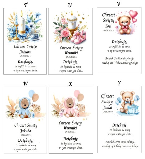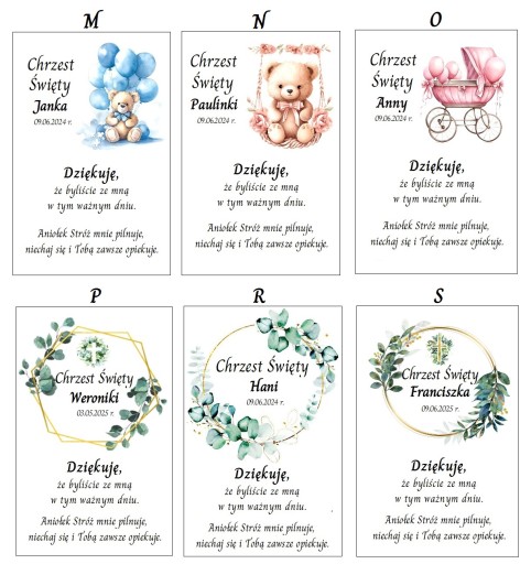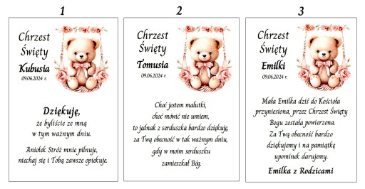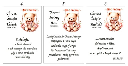 Śliczne personalizowane podziękowania dla gości z okazji Chrztu Świętego