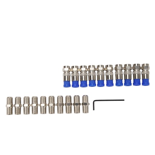 4. 20-częściowe złącze F: złącze F zapewnia bezpieczne połączenie kabli koncentrycznych RG6, system uszczelnienia typu O-ring zapobiega przedostawaniu się wody do złącza, a kompresja promieniowa 360 stopni zapewnia integralność i doskonałą wydajność RF.