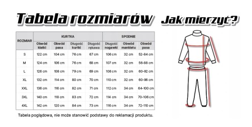 * Tabela rozmiarów jest poglądowa, nie może stanowić podstawy do reklamacji produktu.