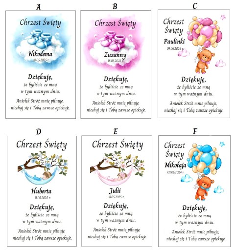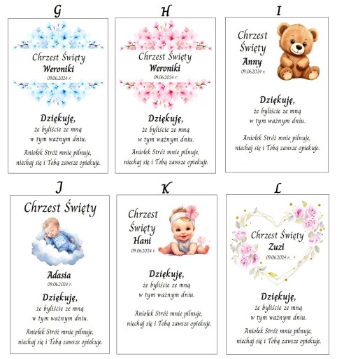 Śliczne personalizowane podziękowania dla gości z okazji Chrztu Świętego