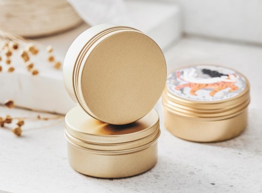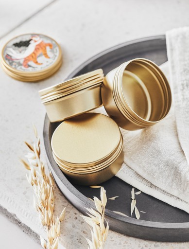 Złota, aluminiowa, pokryta lakierem ochronnym puszka do przechowywania szamponu w kostce, porcji peelingu lub balsamu do ciała w wersji podróżnej. Umożliwia bezpieczny transport kosmetyków na basen, siłownię oraz wakacje. Funkcjonalna, prosta i elegancka.