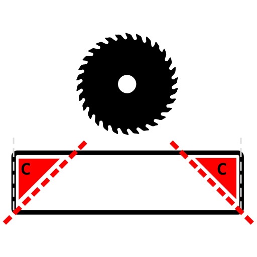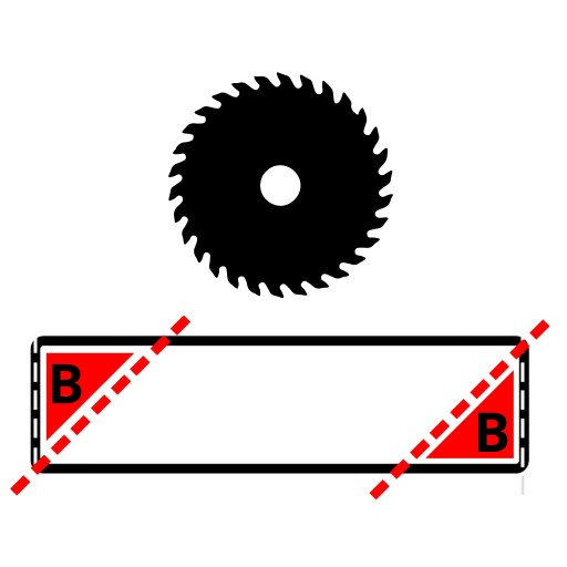W tym przypadku podana długość produktu odnosi się do najdłuższej krawędzi po wykonaniu cięcia skośnego