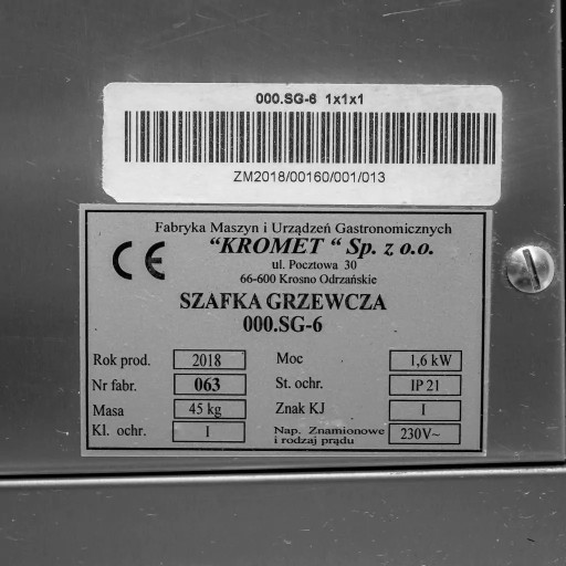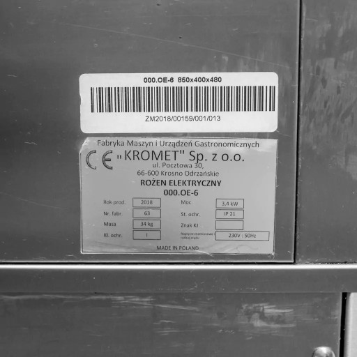 Rożen elektryczny KROMET 000.OE-6 z szafką grzewczą 000.SG-6 2018
