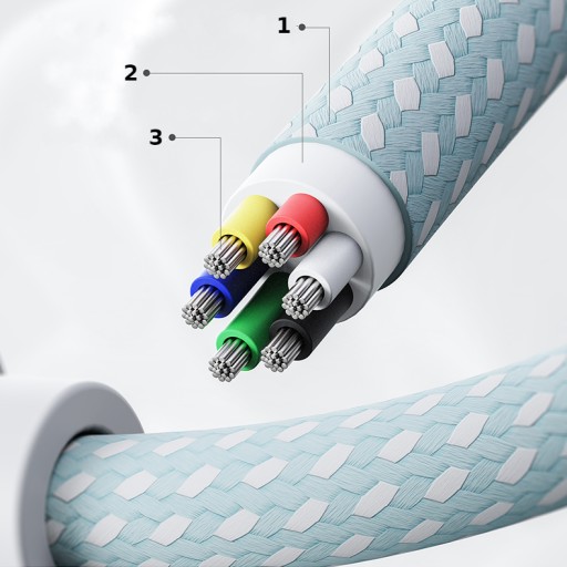 Sam kabel posiada dwuwarstwową osłonę z elastycznego silikonu i materiałowej osłony, co sprawia, że jest jednocześnie giętki i wytrzymały.