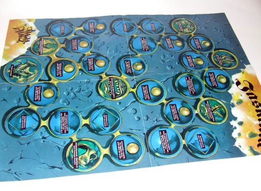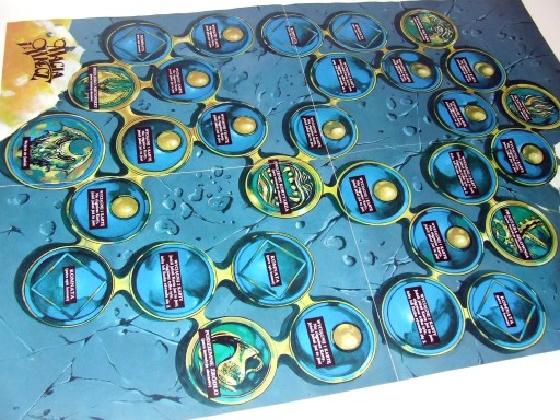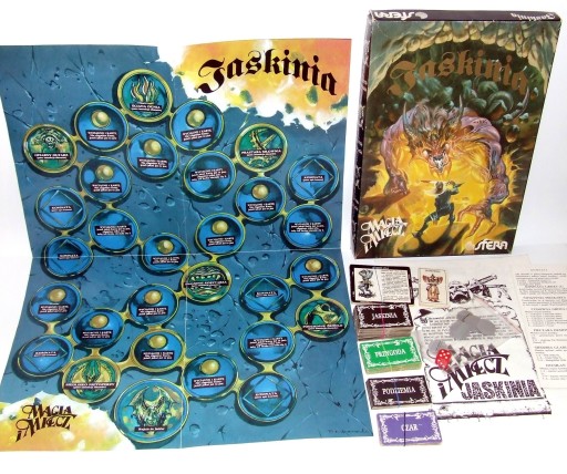 Pudełko ma otarcia, małe zagięcia na krawędziach i rogach, ale żadnych uszkodzeń, plansza jest w -bdb stanie, ma tylko malutkie miejscowe zagięcia. Podobnie instrukcja. Małe i duże karty postaci mają małe zagięcia, otarcia, pozostałe są w bdb stanie.