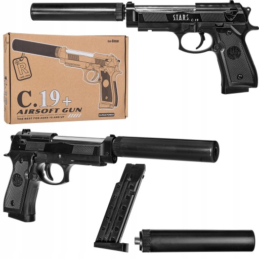 ✅Pistolet BERETTA C19 ASG, z Napędem Sprężynowym na Kulki 6mm