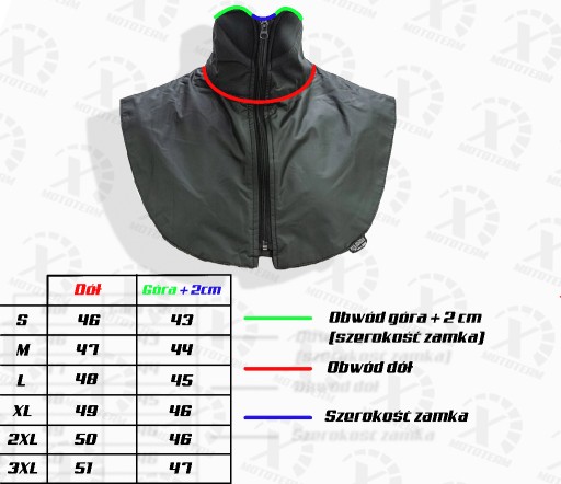 - Neoprenowa stójka pozwala szczelnie włożyć kołnierz pod kask