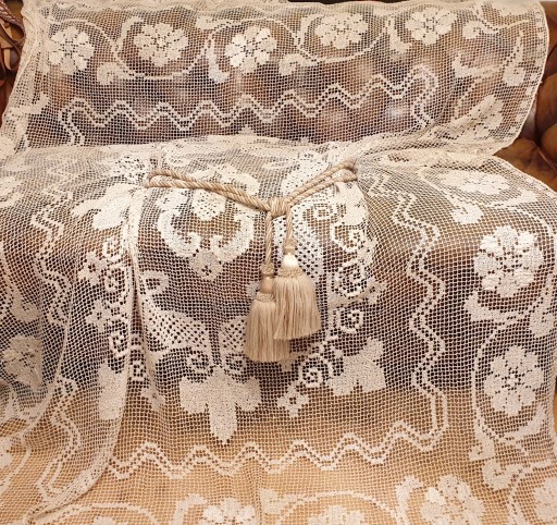 FIRANA KOŁKOWA PREPIĘKNY WZÓR MEDALION CUDO , STAN BARDZO DOBRY JAK NA UPŁYW CZASU POLECAM TO PRAWDZIWA PEREŁKA WYMIARY 270X185 CM, 12 CM FRĘDZLE