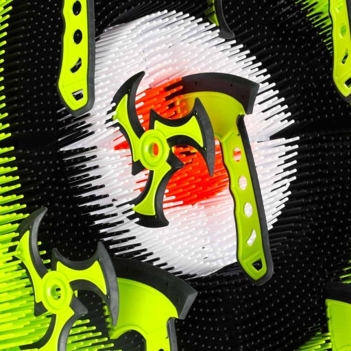 Plastikowe toporki i shuriken’y są obtoczone miękkim silikonem, dzięki czemu rzucanie nimi jest całkowicie bezpieczne. Każdy z akcesoriów jest starannie wykonany, by zapewnić autentyczny wygląd i ekscytującą zabawę. Stabilny, plastikowy stojak z uchwytami umożliwia łatwe przechowywanie akcesoriów i szybkie przygotowanie zestawu do kolejnej sesji treningowej. Dzięki temu Twoje dziecko może doskonalić swoje umiejętności w każdej chwili.