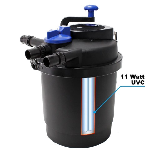 - Urządzenie łączy w sobie filtrację biologiczną i mechaniczną oraz eliminuje algi dzięki wbudowanej lampie UV. Efekt krystalicznie czystej wody.