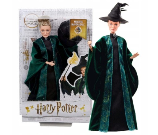 Kolory i elementy dekoracyjne mogą się różnić. · Lalka zapewni fanom i kolekcjonerom doskonałą zabawę – będą mogli odgrywać swoje ulubione scenki, a także wymyślać własne! · Dokładnie odtworzone szczegóły – takie jak charakterystyczne szata i tiara – sprawiają, że lalka profesor Minerwa McGonagall wygląda zupełnie jak filmowa postać · Profesor McGonagall ma na sobie szaty znane z filmów i trzyma w dłoni wyjątkową różdżkę, którą może „rzucać zaklęcia” (oczywiście z pomocą małych czarodziejów!) · Lalka ma aż jedenaście punktów zgięcia, które umożliwiają ustawianie jej w różnych pozach i opowiadanie dynamicznych historyjek, takich jak o pomaganiu Harry’emu w walce z Lordem Voldemortem · Harry Potter™ i jego przyjaciele wiedzą, że razem znaczy lepiej! Młodzi fani mogą zebrać wszystkie lalki przedstawiające ich ulubionych bohaterów, tworząc niepokonaną drużynę i przeżywając prawdziwie magiczne chwile