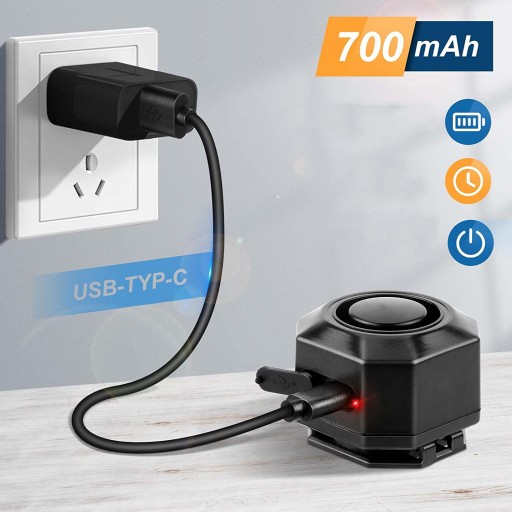 🔷🔷Nowo zmodernizowany alarm rowerowy USB: W porównaniu z alarmem na baterie, alarm antykradzieżowy jest ładowany za pomocą kabla USB-C i może być używany 1-3 miesiące po pełnym naładowaniu.