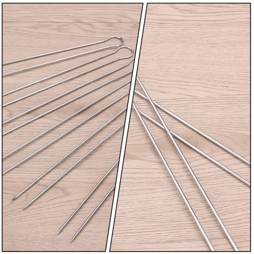 ✅ Podwójne szaszłyki mają kształt litery U. Podwójne patyczki do szaszłyków pewnie utrzymują żywność na miejscu i nie zsuwają się podczas obracania szaszłyków.