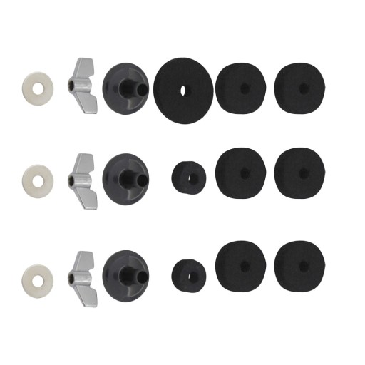 ✅ Akcesoria do wymiany talerzy obejmują 9 sztuk filców do talerzy, 3 sztuki podkładek, 3 sztuki tulei i 3 sztuki nakrętek motylkowych podstawy.